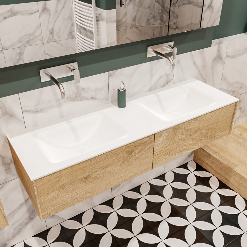 MONDIAZ LUSH 150 badmeubel washed oak 2 lades wastafel dubbel geen kraangat