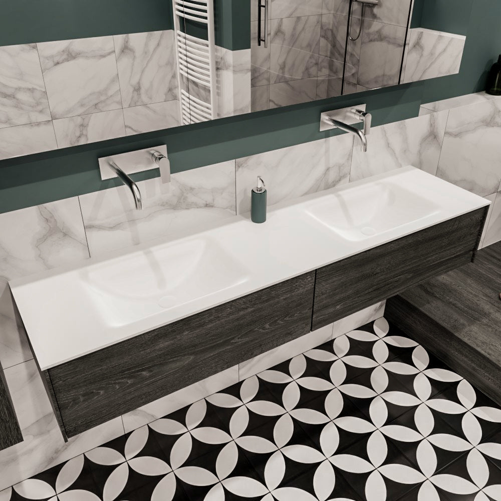 De LUSH meubelset is verkrijgbaar in 4 prachtige melamine kleuren, die een warme en natuurlijke uitstraling toevoegen aan je badkamer. In de LUSH serie heb je de keuze tussen 1 of 2 lades en kun je kiezen tussen een wastafel of waskom. Daarnaast is het mogelijk om te kiezen voor wel of geen kraangat en de positie van de wastafel/waskom. Deze serie biedt daarmee veelzijdige opties om het badmeubel aan te passen aan jouw specifieke behoeften en smaak.
