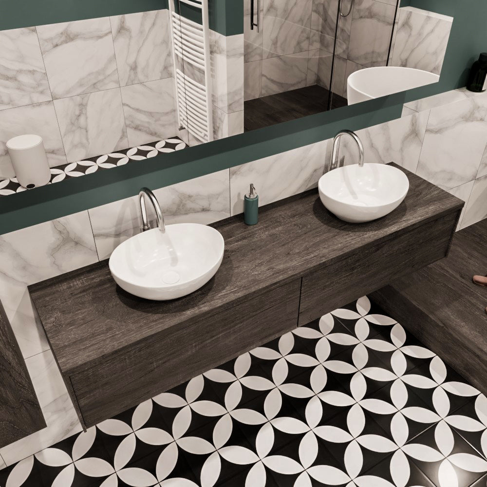 De LUSH meubelset is verkrijgbaar in 4 prachtige melamine kleuren, die een warme en natuurlijke uitstraling toevoegen aan je badkamer. In de LUSH serie heb je de keuze tussen 1 of 2 lades en kun je kiezen tussen een wastafel of waskom. Daarnaast is het mogelijk om te kiezen voor wel of geen kraangat en de positie van de wastafel/waskom. Deze serie biedt daarmee veelzijdige opties om het badmeubel aan te passen aan jouw specifieke behoeften en smaak.