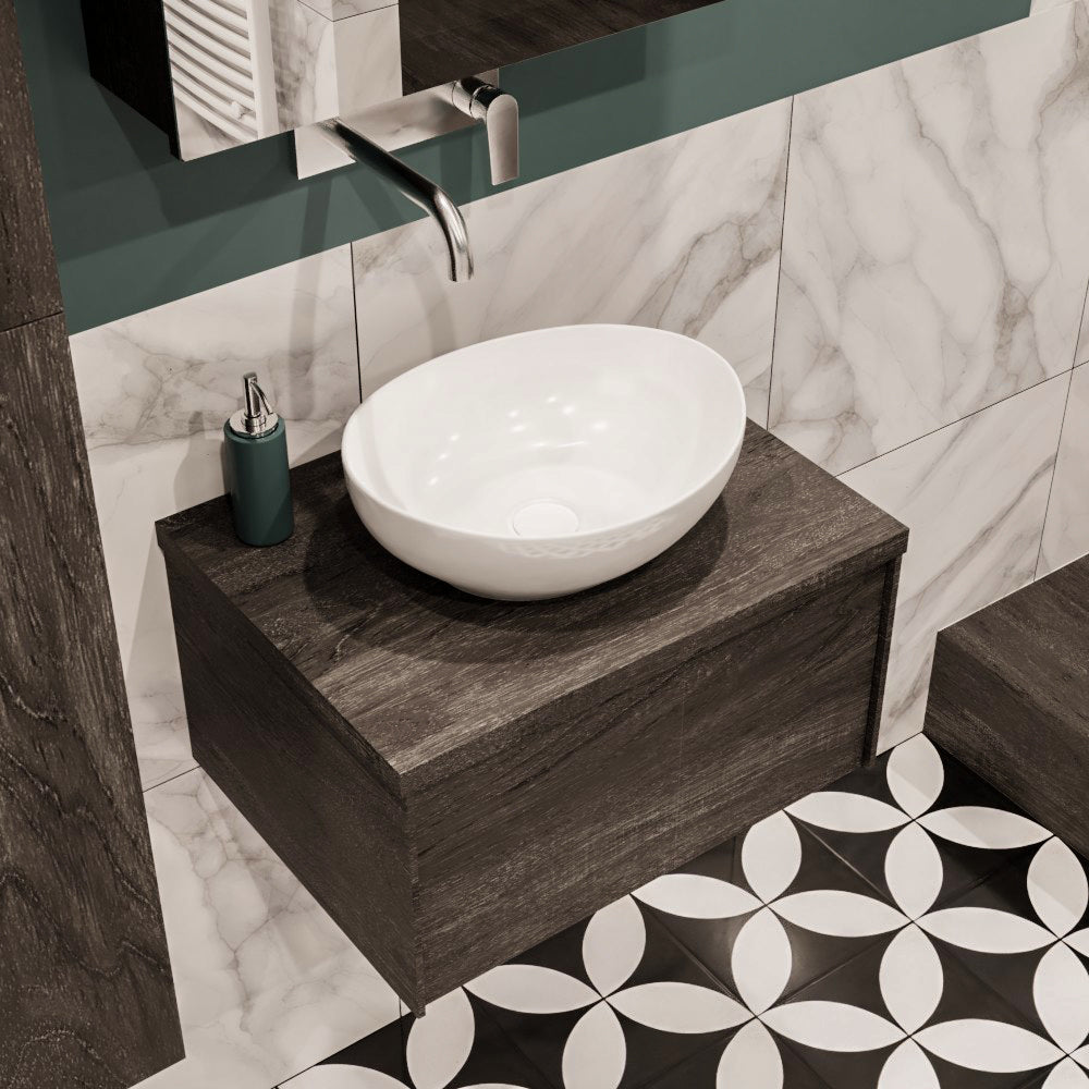 De LUSH meubelset is verkrijgbaar in 4 prachtige melamine kleuren, die een warme en natuurlijke uitstraling toevoegen aan je badkamer. In de LUSH serie heb je de keuze tussen 1 of 2 lades en kun je kiezen tussen een wastafel of waskom. Daarnaast is het mogelijk om te kiezen voor wel of geen kraangat en de positie van de wastafel/waskom. Deze serie biedt daarmee veelzijdige opties om het badmeubel aan te passen aan jouw specifieke behoeften en smaak.
