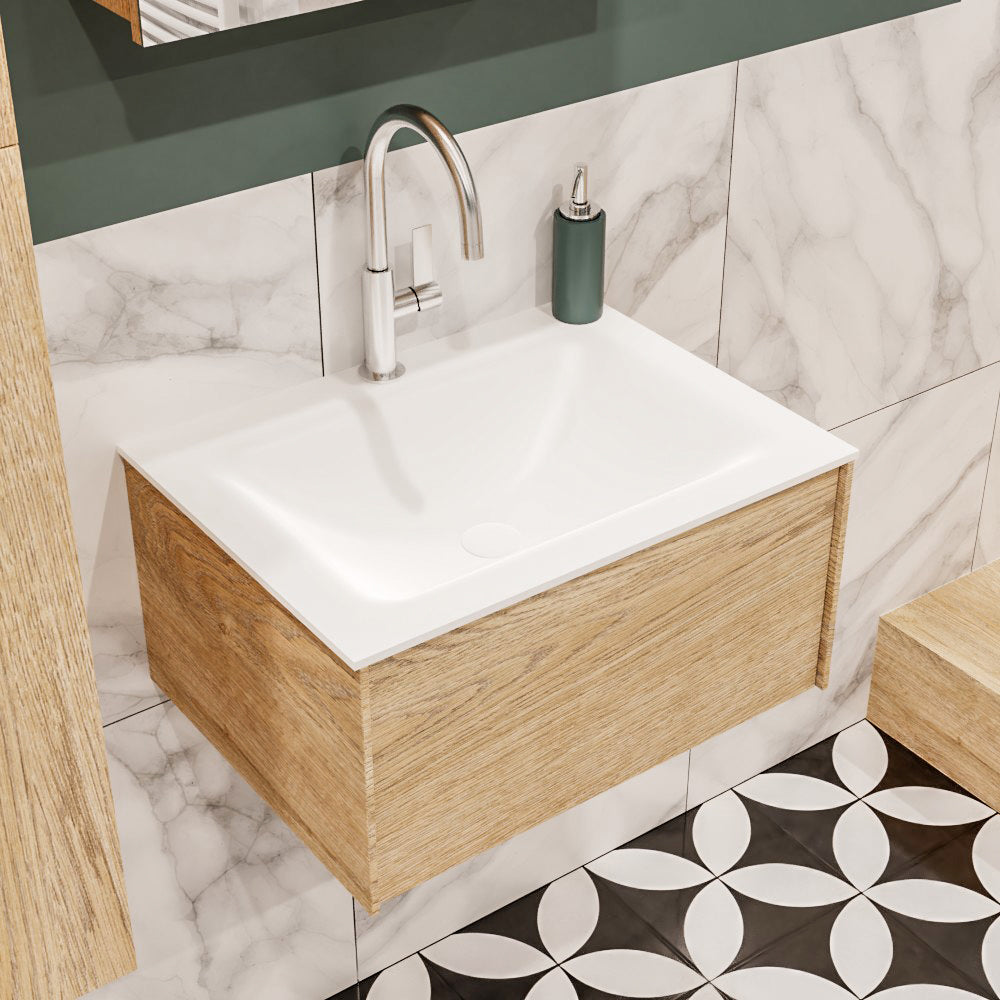 MONDIAZ LUSH 60cm badmeubel washed oak 1 lade wastafel CLOUD midden 1 kraangat