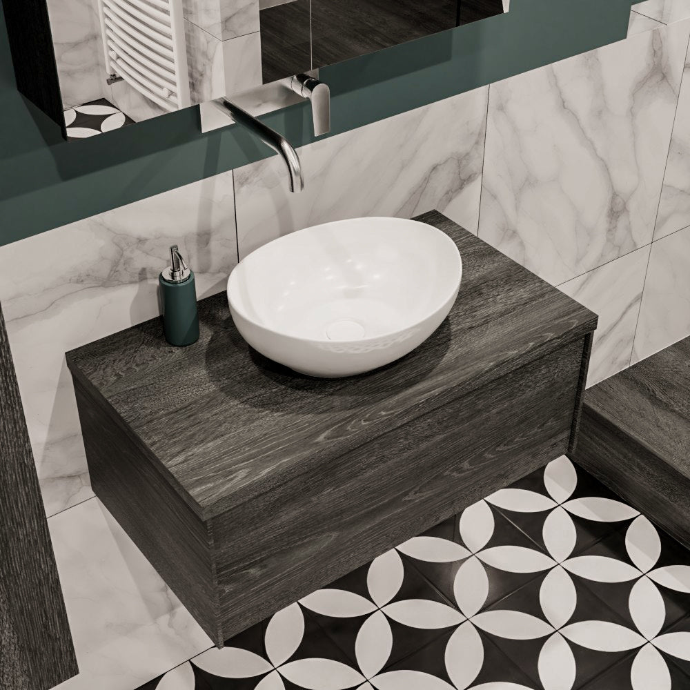 De LUSH meubelset is verkrijgbaar in 4 prachtige melamine kleuren, die een warme en natuurlijke uitstraling toevoegen aan je badkamer. In de LUSH serie heb je de keuze tussen 1 of 2 lades en kun je kiezen tussen een wastafel of waskom. Daarnaast is het mogelijk om te kiezen voor wel of geen kraangat en de positie van de wastafel/waskom. Deze serie biedt daarmee veelzijdige opties om het badmeubel aan te passen aan jouw specifieke behoeften en smaak.