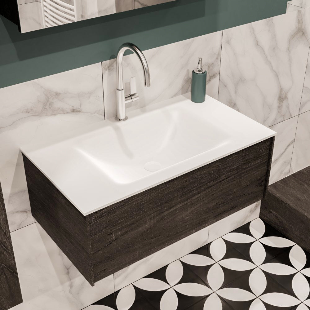 De LUSH meubelset is verkrijgbaar in 4 prachtige melamine kleuren, die een warme en natuurlijke uitstraling toevoegen aan je badkamer. In de LUSH serie heb je de keuze tussen 1 of 2 lades en kun je kiezen tussen een wastafel of waskom. Daarnaast is het mogelijk om te kiezen voor wel of geen kraangat en de positie van de wastafel/waskom. Deze serie biedt daarmee veelzijdige opties om het badmeubel aan te passen aan jouw specifieke behoeften en smaak.