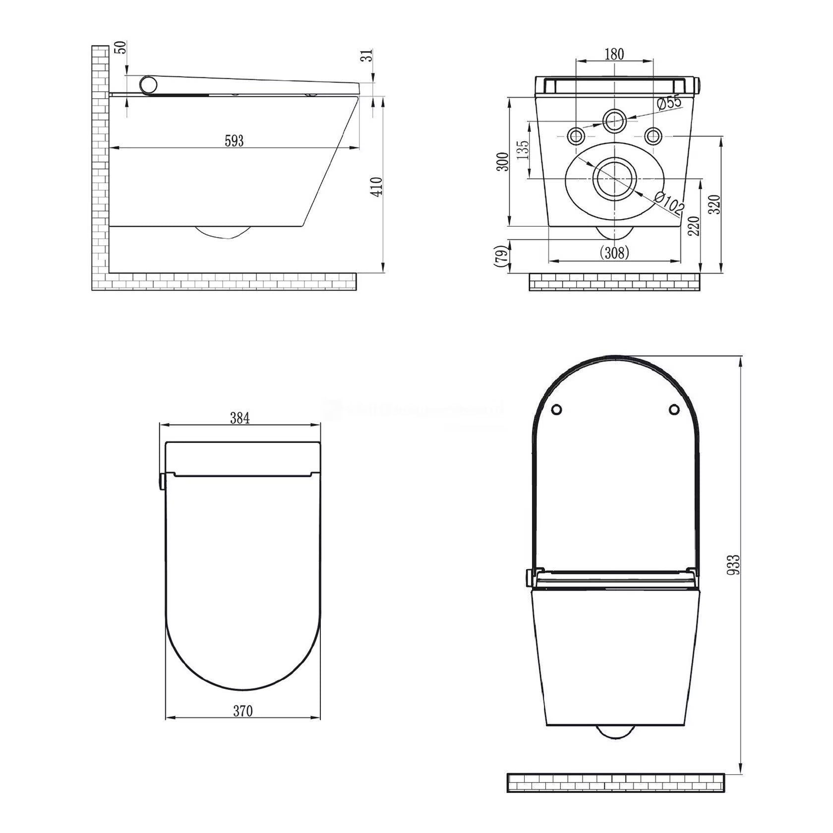 1x RapoWash Basic bidet toilet met zitting zonder spoelrand