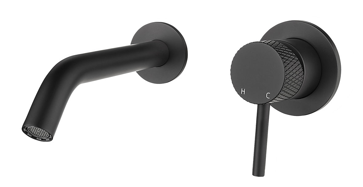 Ribbd eenhendel wastafelkraan inbouw compleet mat zwart
