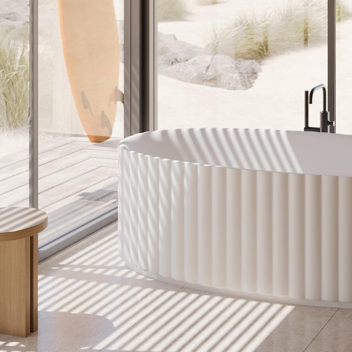 Het Riho Catching Waves Vrijstaand Bad straalt pure elegantie uit. De mat witte afwerking geeft het bad een tijdloze uitstraling die moeiteloos past bij verschillende interieurstijlen. De vloeiende vormen en strakke lijnen creëren een gevoel van harmonie en rust, waardoor dit bad een echte eyecatcher is in de badkamer. Laat jezelf onderdompelen in luxe en geniet van een badervaring als nooit tevoren.