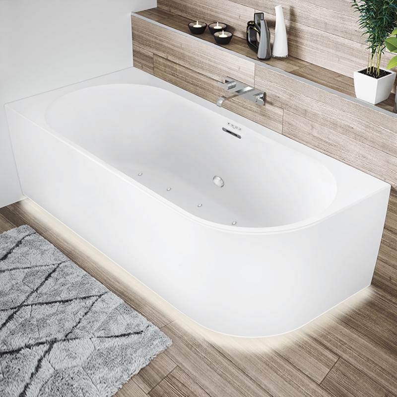 De Riho Desire is ook verkrijgbaar met LED verlichting. In dit geval wordt het halfvrijstaand bad uitgevoerd met LED verlichting langs de onderkant van het bad. Op deze manier creëer je een prachtig amlight effect.
