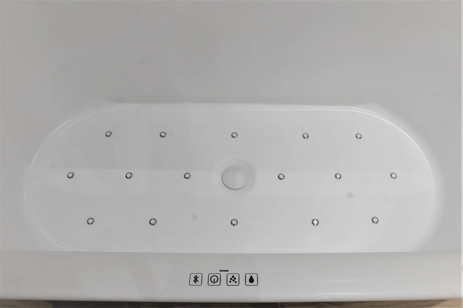 Een halfvrijstaand bad met verfrissende bubbels? Vanaf nu is het mogelijk! Voor een aantal vrijstaande en back-to-wall baden biedt Riho de optie: Sparkle Mood. Een systeem met een fluisterstille luchtpomp voor 16 sparkle jets. Een eenvoudige te bedienen capacitieve 4-toets op de badrand en kleurentherapie LED verlichting horen bij de ervaring. En B-Music, via Bluetooth luisteren naar muziek terwijl je bad een speaker wordt, maakt je relaxte badmoment compleet.