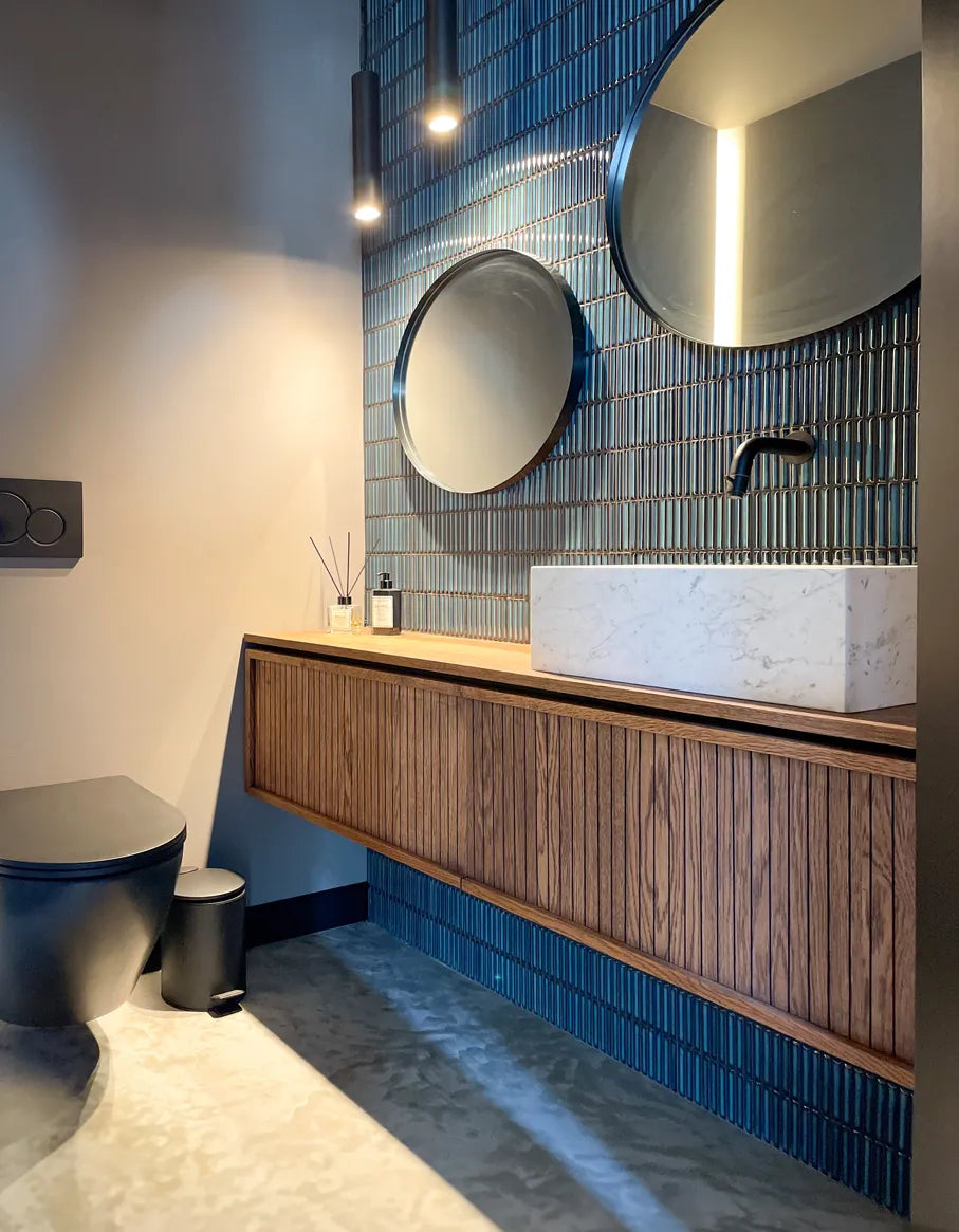 Deze mooie Mini Vinger mozaïek tegel met de gespikkelde kleur Azuur Blauw uit de serie Sevilla is gemaakt van Geglazuurd Porselein met een Glanzende finish. Deze wandtegel is geschikt voor: Badkamer, Keuken, Toilet, Zwembad, Sauna, Buiten