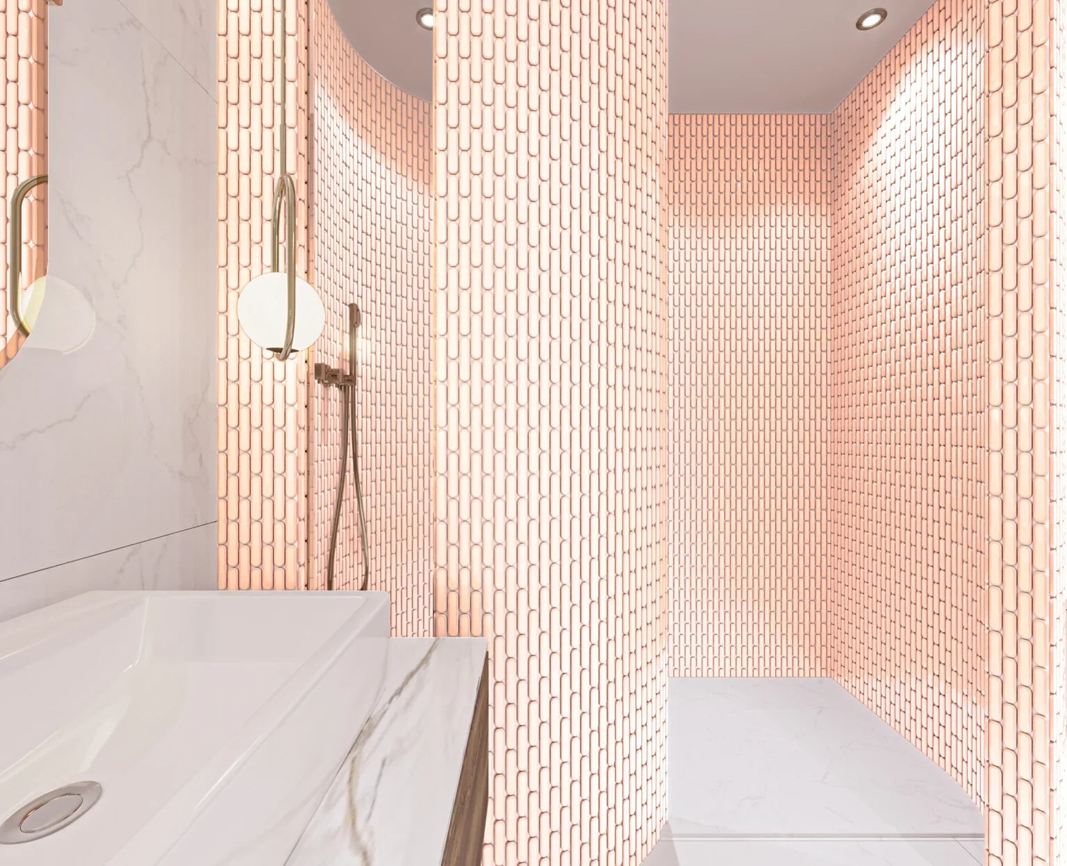 Deze mooie Ovale Vinger mozaïek tegel met de kleur Roze uit de serie Sevilla is gemaakt van Geglazuurd Porselein met een Glanzende finish. Deze wandtegel is geschikt voor: Badkamer, Keuken, Toilet, Zwembad, Sauna, Buiten