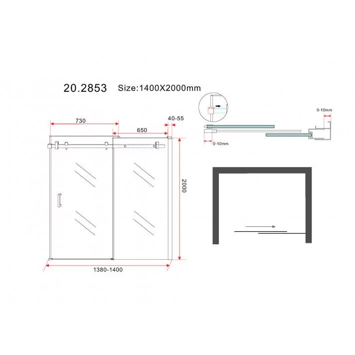 Slide nis schuifdeur 1400 x 2000 x 8 mm nano helder glas/mat zwart