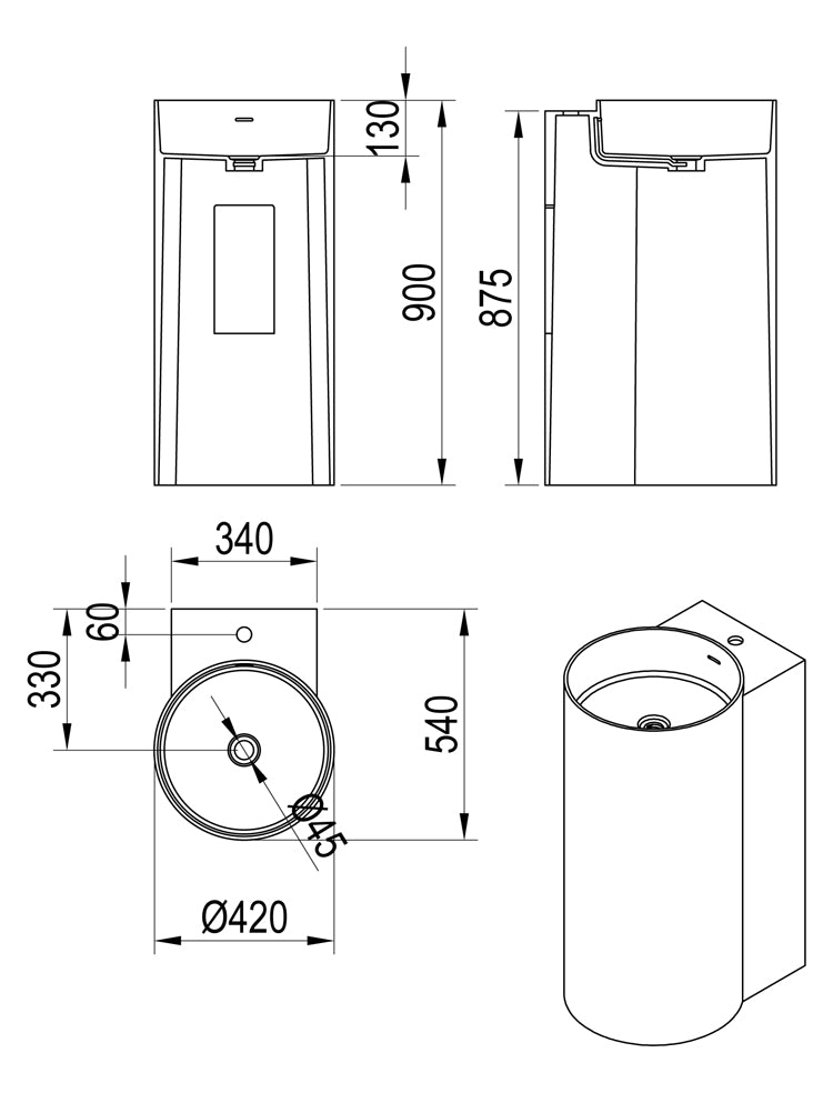 StoneArt Vrijstaande Wastafel LZ550 42x54cm - mat zwart
