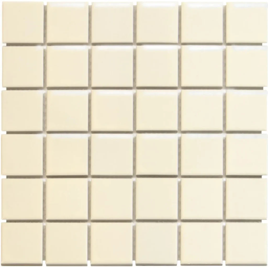 Grote glanzende cream gekleurde vierkante mozaïektegel, uit de Barcelona serie, gemaakt van geglazuurd porselein