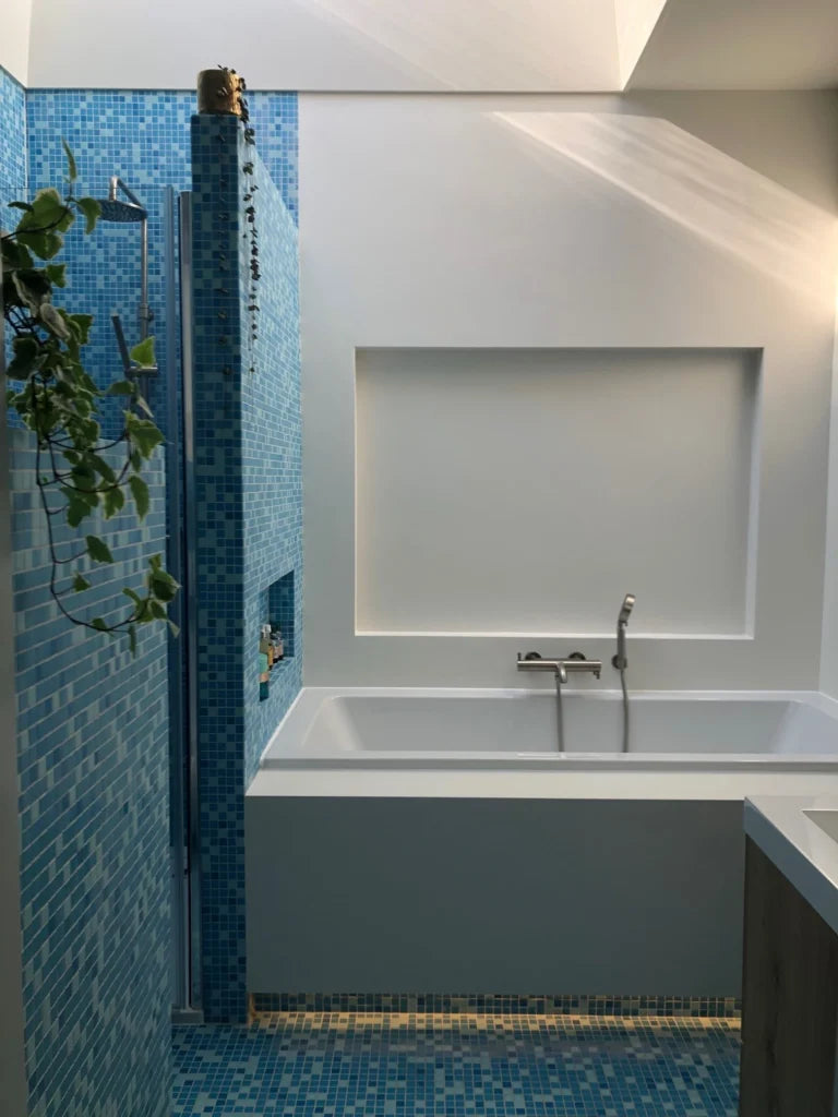 Met het Amsterdam glasmozaïek van the Mosaic Factory tover je jouw badkamer of toilet binnen notime om tot een luxe spa. Dit mozaïek bestaat uit kleine vierkantjes van 2 bij 2cm, vastgemaakt op een mat van 32x32cm. Zo plaats je het mozaïek lekker vlug. De voeg die tussen de steentjes zit, is slecht 1,5mm breed. Super strak dus!
