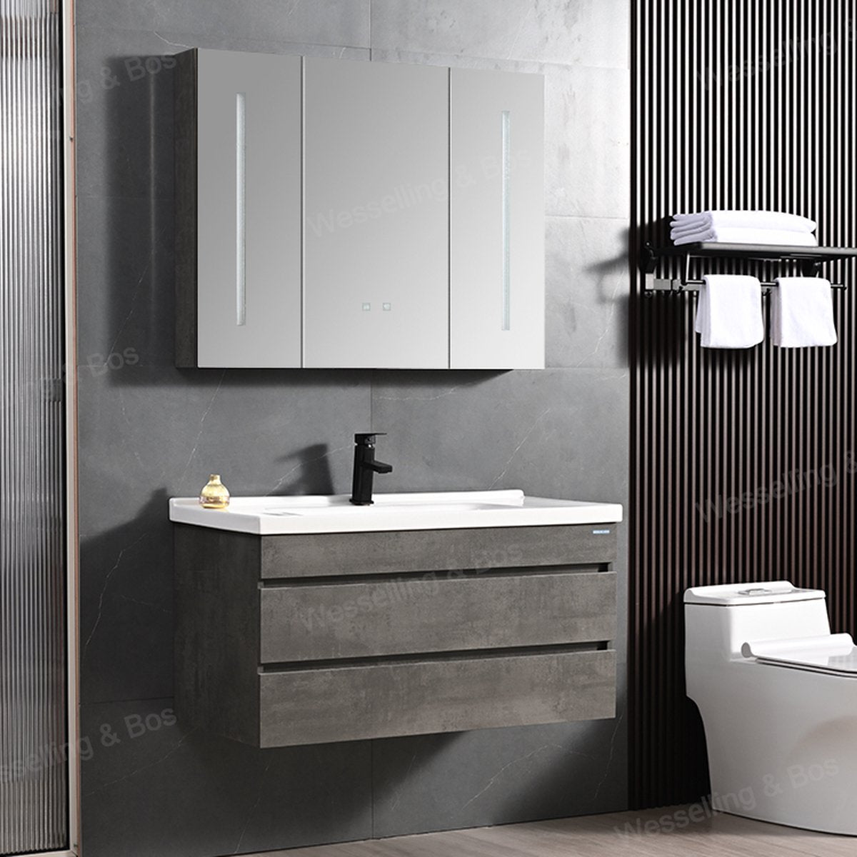 Vision meubelset (incl. spiegel) 100 cm hoogglans grijsBenaderbare RAL-kleur: RAL 7024
