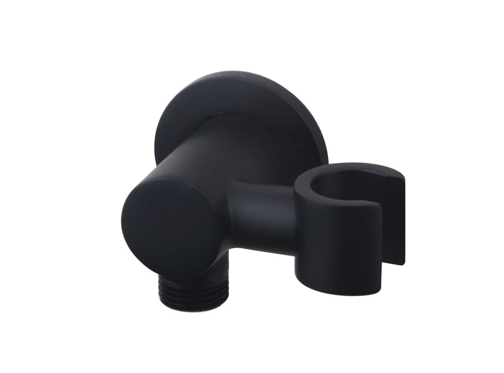 Wandaansluitbocht met kantelbare handdouchehouder rond 1/2" mat zwart