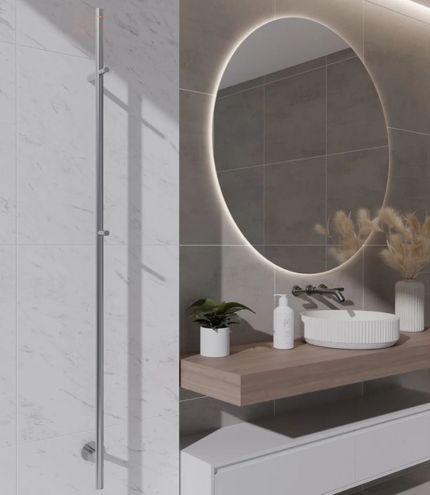 Deze elektrische staafradiator is een stijlvolle toevoeging aan uw badkamer. Het strakke design geeft een moderne uitstraling. Dankzij de smalle vormgeving neemt de radiator weinig plek in beslag, waardoor het ook een ideale radiator is voor de compactere ruimtes. Warm met gemak uw handdoeken op door deze aan de haken van de radiator te hangen. Zo heeft u altijd een warme handdoek binnen bereik.
